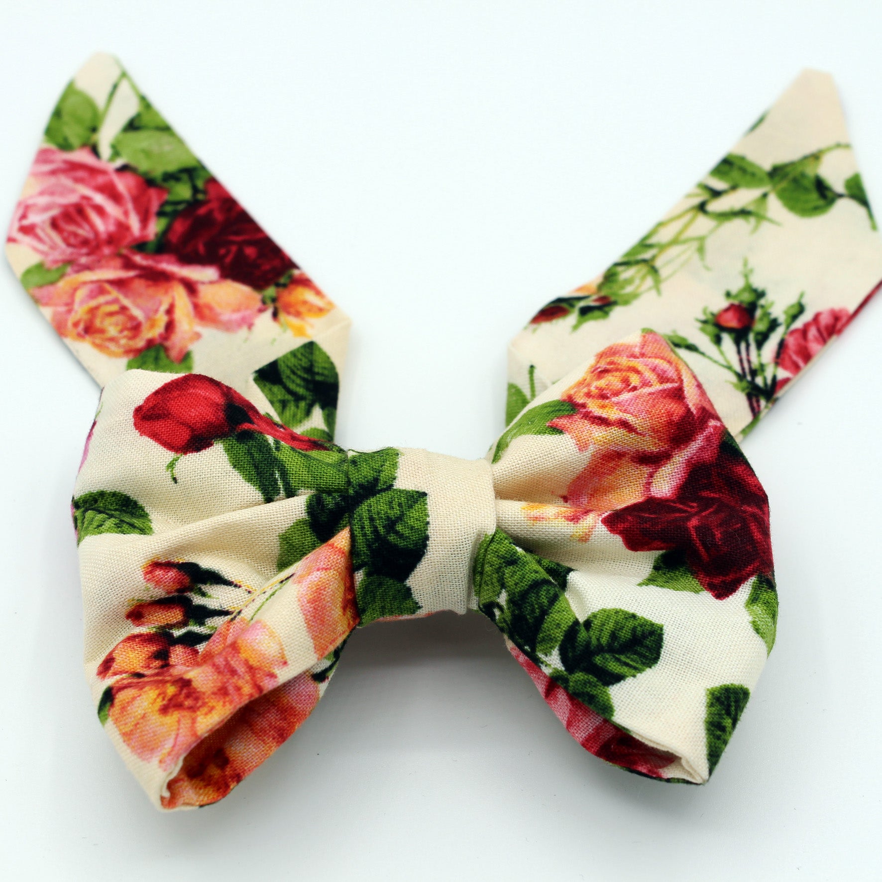 Handmade, pattern is unique for each bow and clip is stitched.